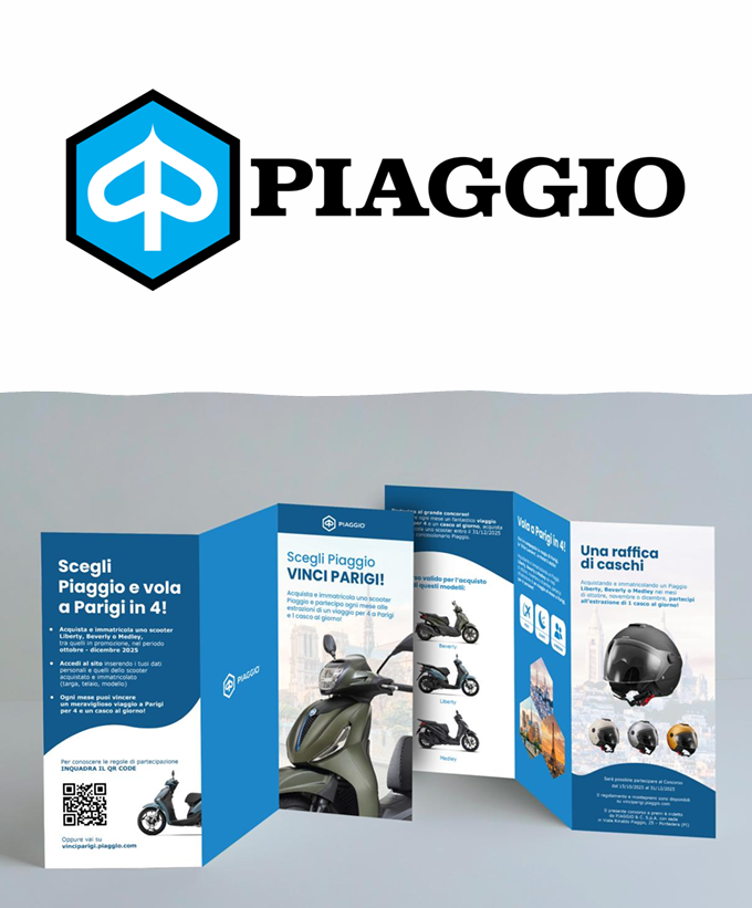 Sviluppare un concorso a supporto del canvass di vendita Scooter Piaggio, incrementando awareness, traffico nei touchpoint commerciali e intenzione d’acquisto, con una meccanica ingaggiante a sostegno della conversione.